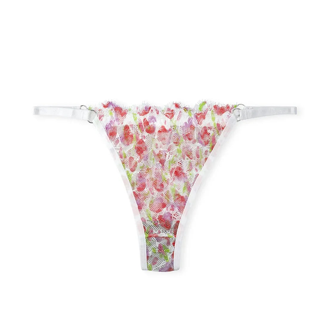 The Floral Sheer thong is a beautifully delicate piece designed to add elegance and charm to your lingerie collection. Made from soft lace net fabric, it features intricate floral embroidery that enhances its feminine appeal. The sheer design offers a subtly seductive look, while the adjustable elastic straps provide a secure and comfortable fit. Lightweight and breathable, this thong is perfect for special occasions or everyday luxury.