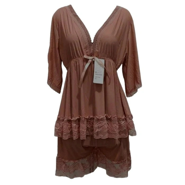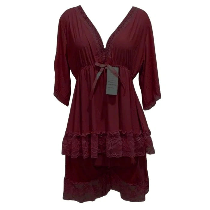 - Matching Shorts: Elastic waistband with a drawstring tie and lace hem.