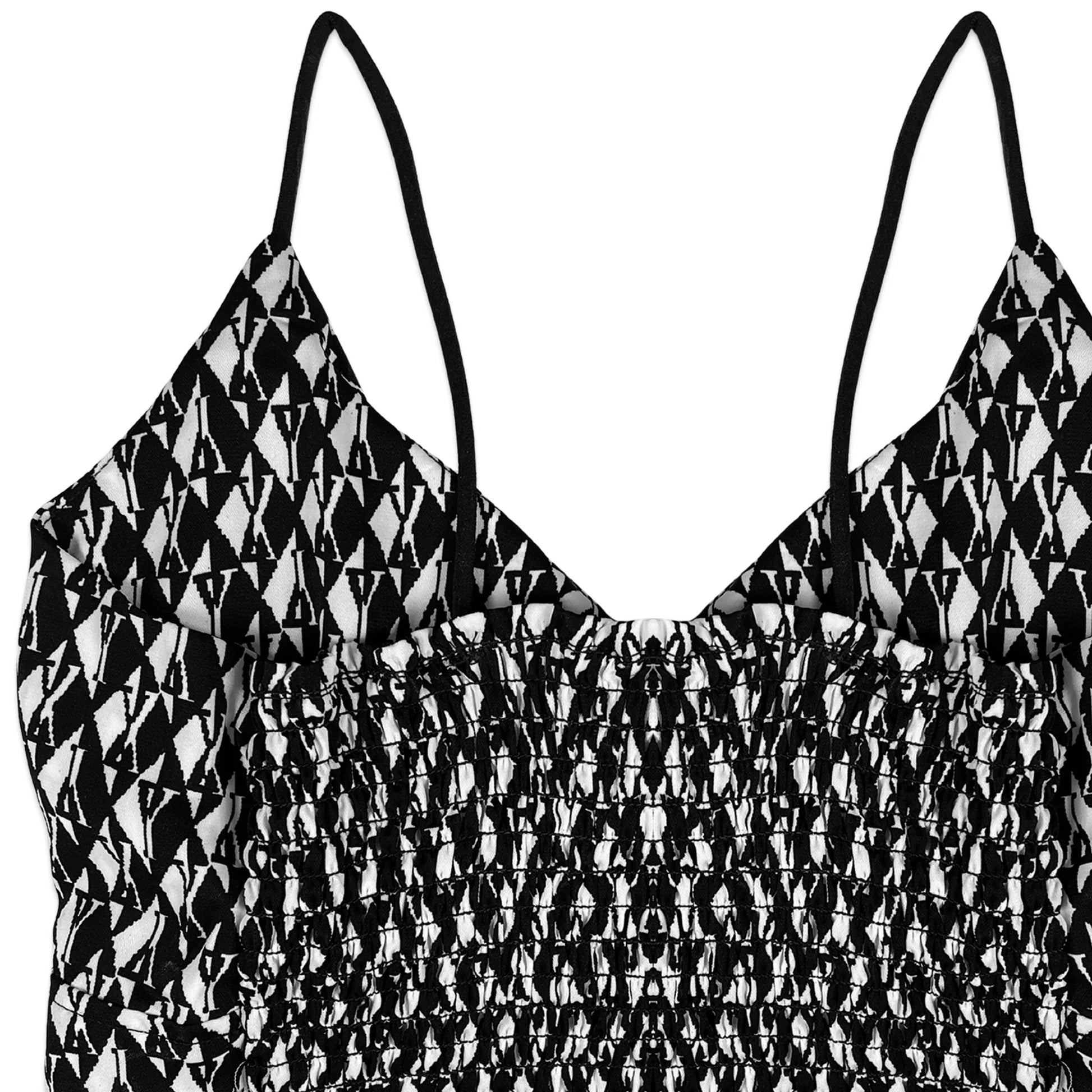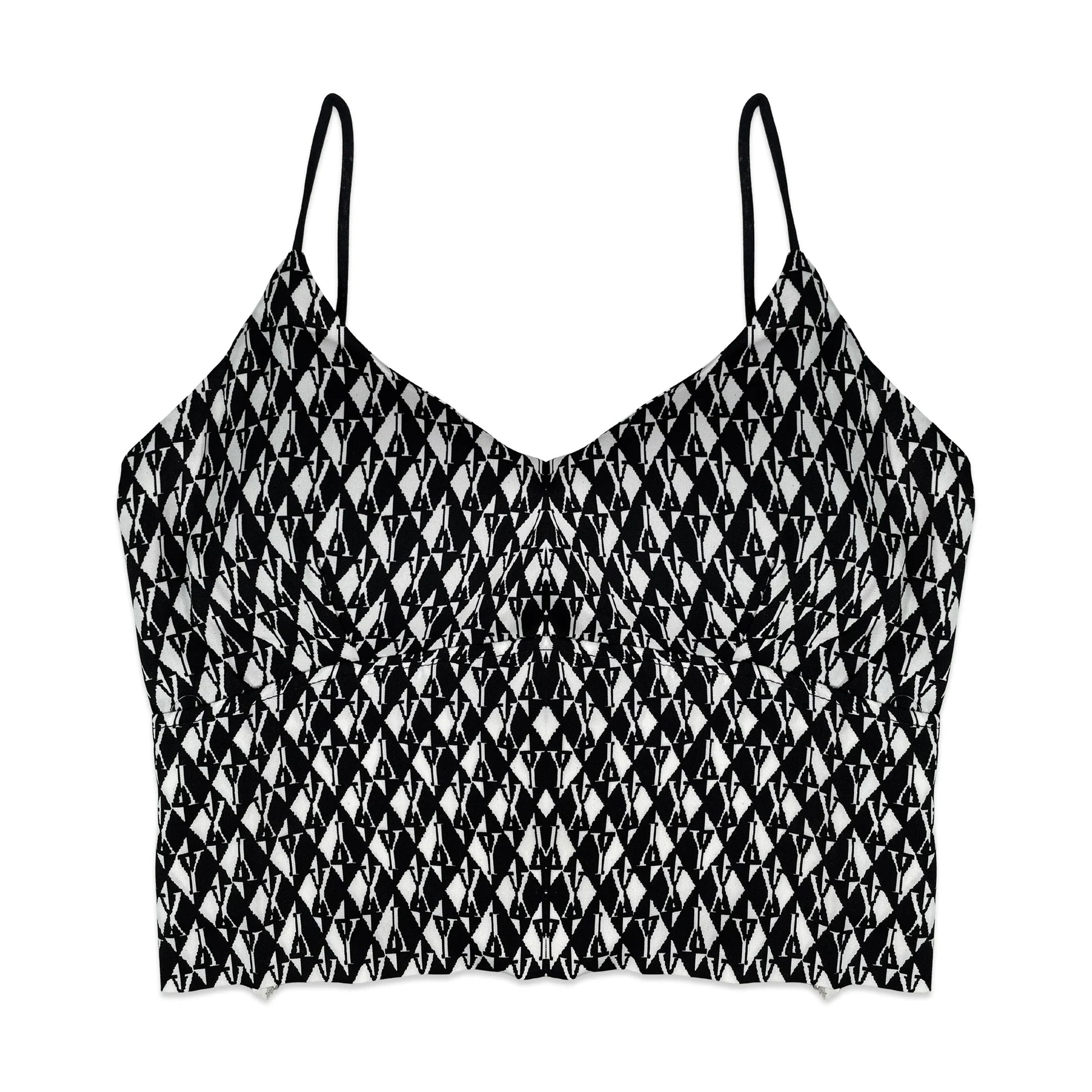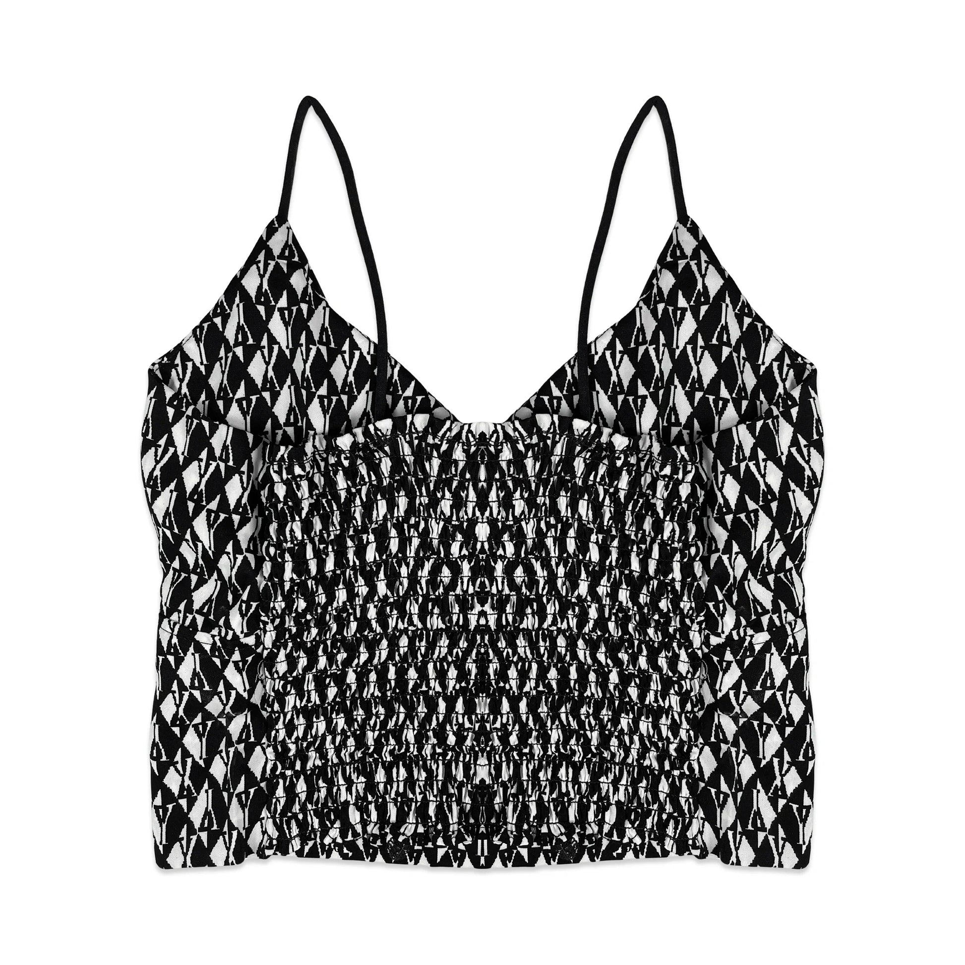 The Vetra Bralette captures a bold, modern vibe with its edgy monochrome triangle pattern. Made from a soft, breathable fabric that hugs your body, this piece is perfect for confident everyday wear. With its ruched back and slim straps, Vetra delivers both a flattering fit and a sleek silhouette—ideal for layering or wearing solo.
