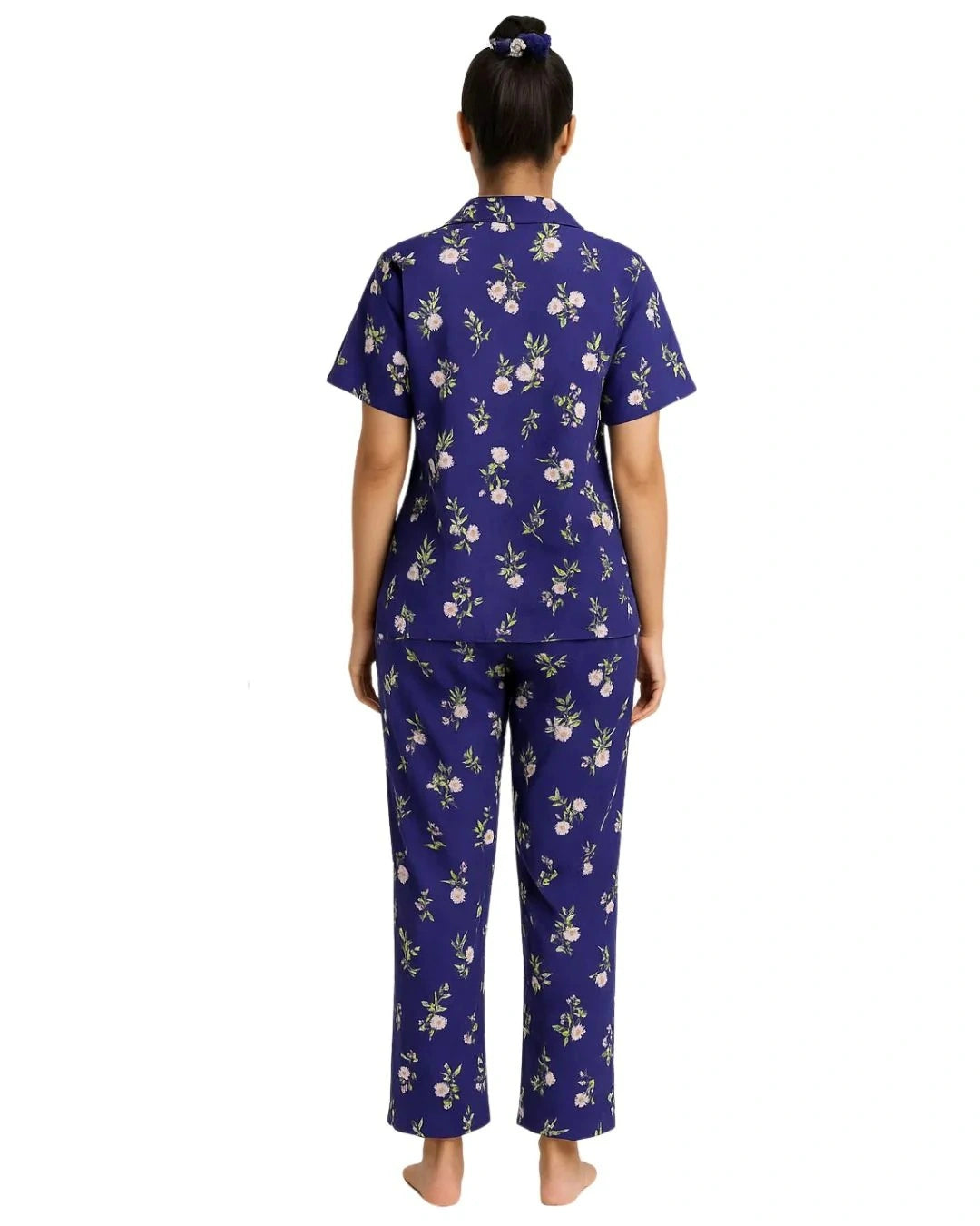 - Design: 3-piece set with a full sleeve button-down shirt trouser and matching scrunchie