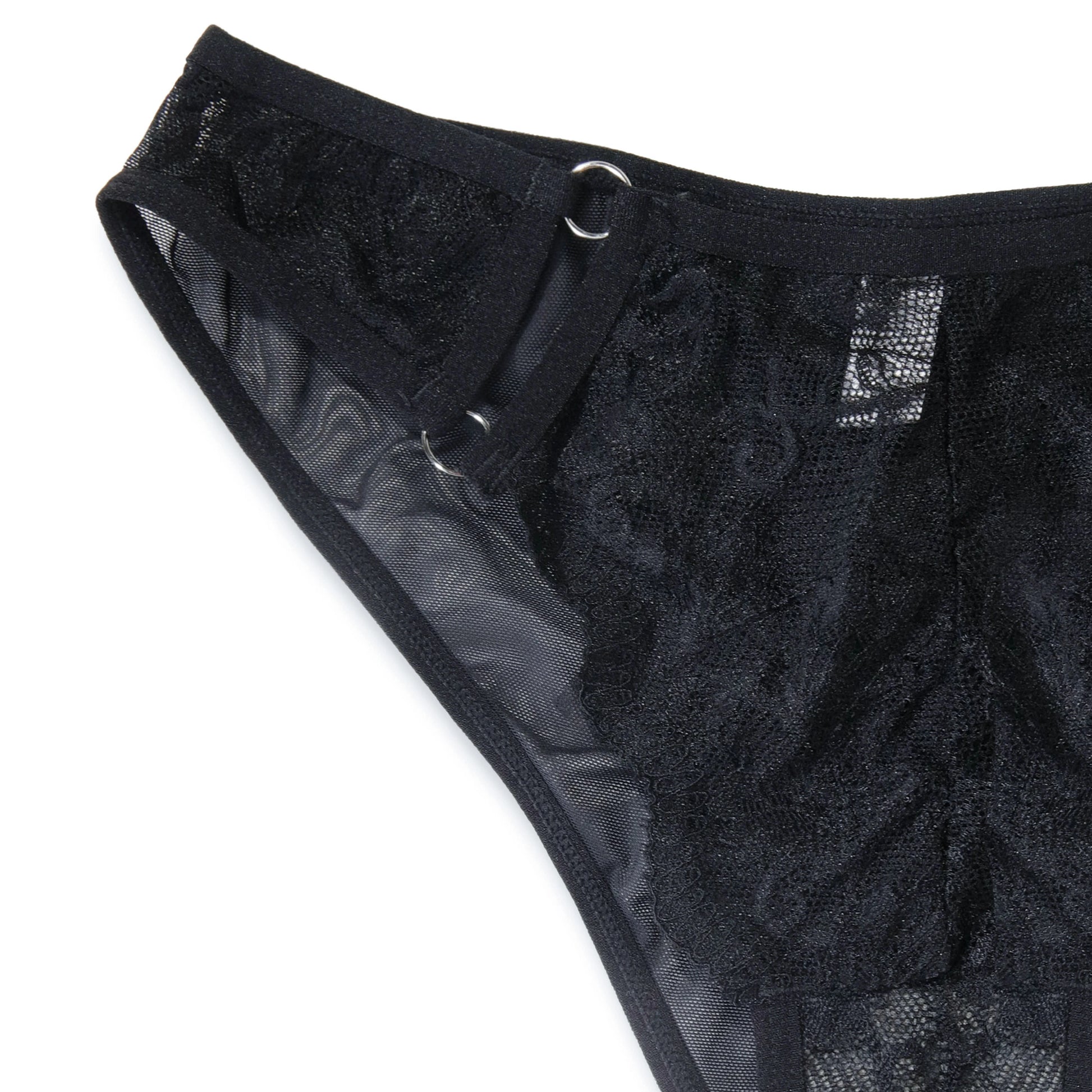 The Luxe Lace Harness Thong features intricate lace detailing paired with sleek mesh fabric, creating a seductive and elegant design. The addition of adjustable harness straps adds a touch of boldness, making it perfect for those who want to embrace both style and allure.