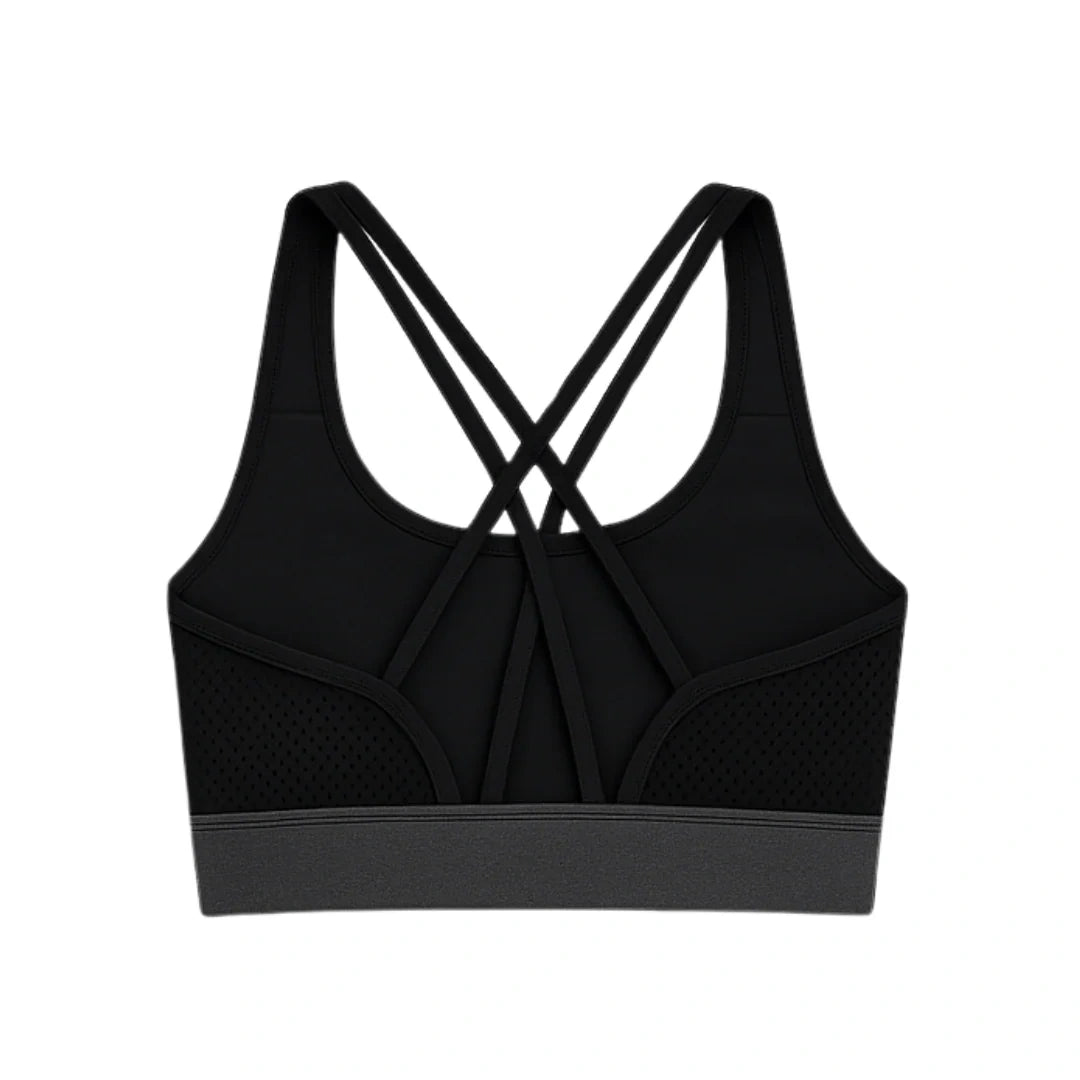 StrapFlex Bra combines sporty energy with a stylish back-tie design. The breathable mesh panels and stretch fabric keep you cool, while the adjustable tie detail adds a customized fit. A perfect mix of performance and fashion for gym, yoga, and daily wear.