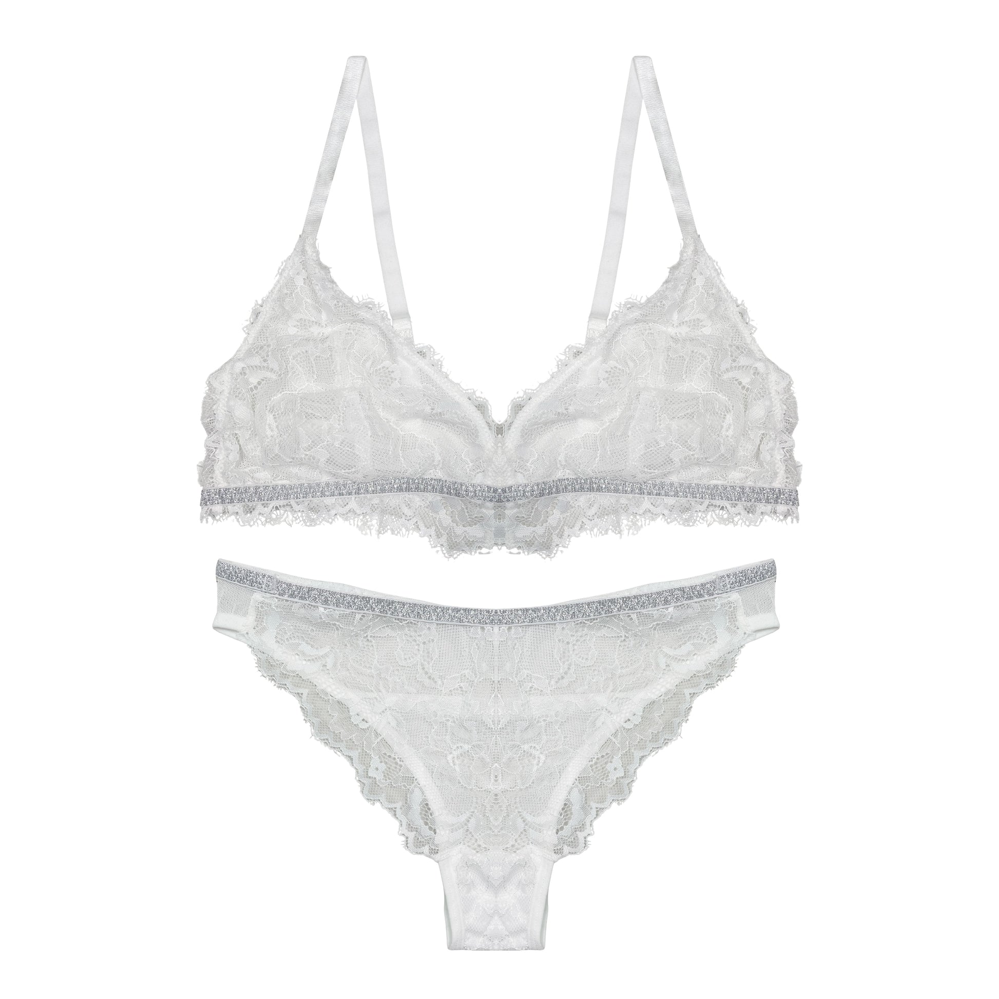 Pure and ethereal, the Ivory Muse Set brings together delicate white lace, soft structure, and gentle femininity. The non-padded bralette and matching panty offer breathable ease and graceful charm — whether you're celebrating something special or just soaking in the serenity of self-love.