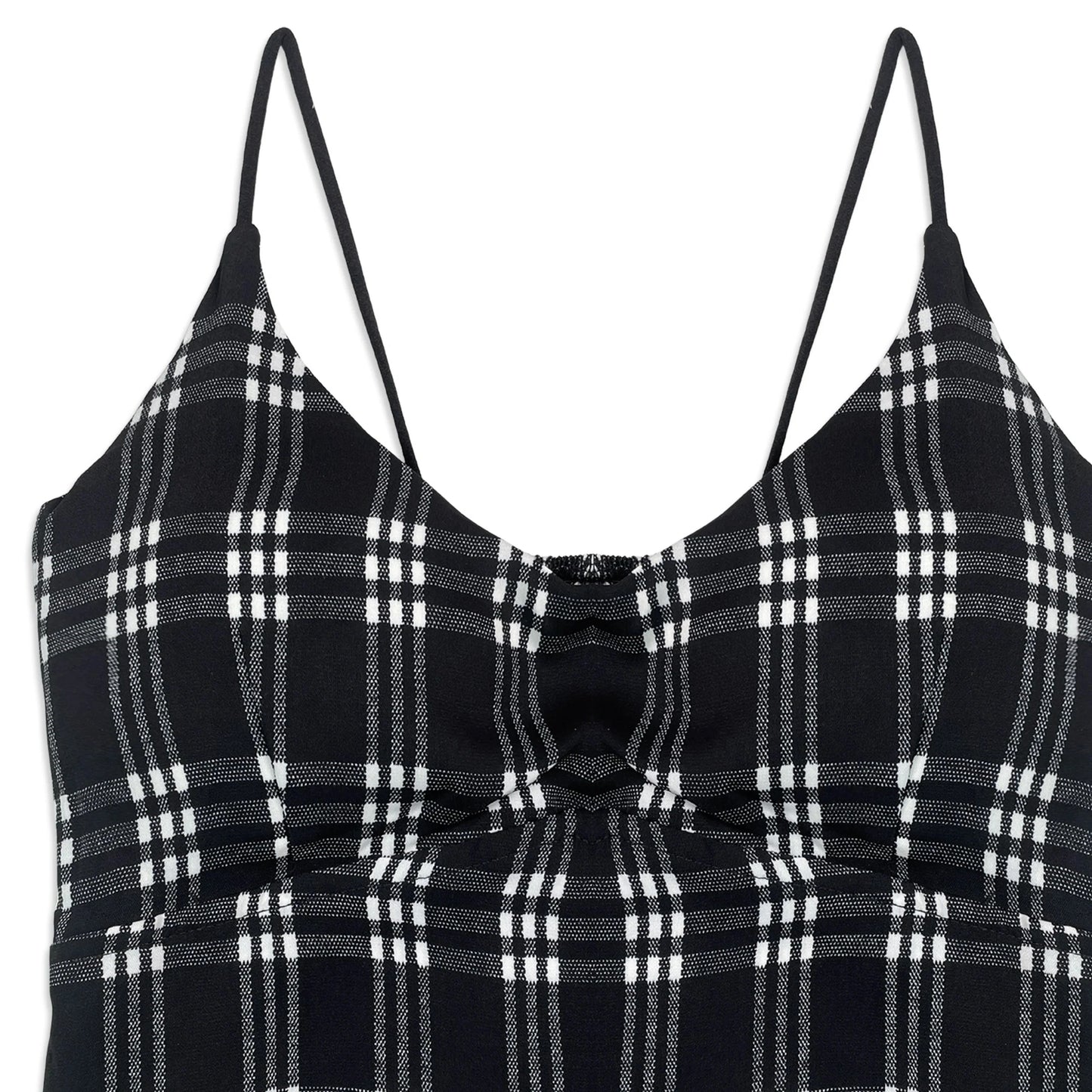 Keep it cool and classic with the Checksy Bralette – designed with a stylish black-and-white check pattern that never goes out of trend. With a soft ruched front, stretchy smocked back, and comfy thin straps, this bralette is made for everyday wear. Dress it up or keep it casual – it fits your vibe either way.