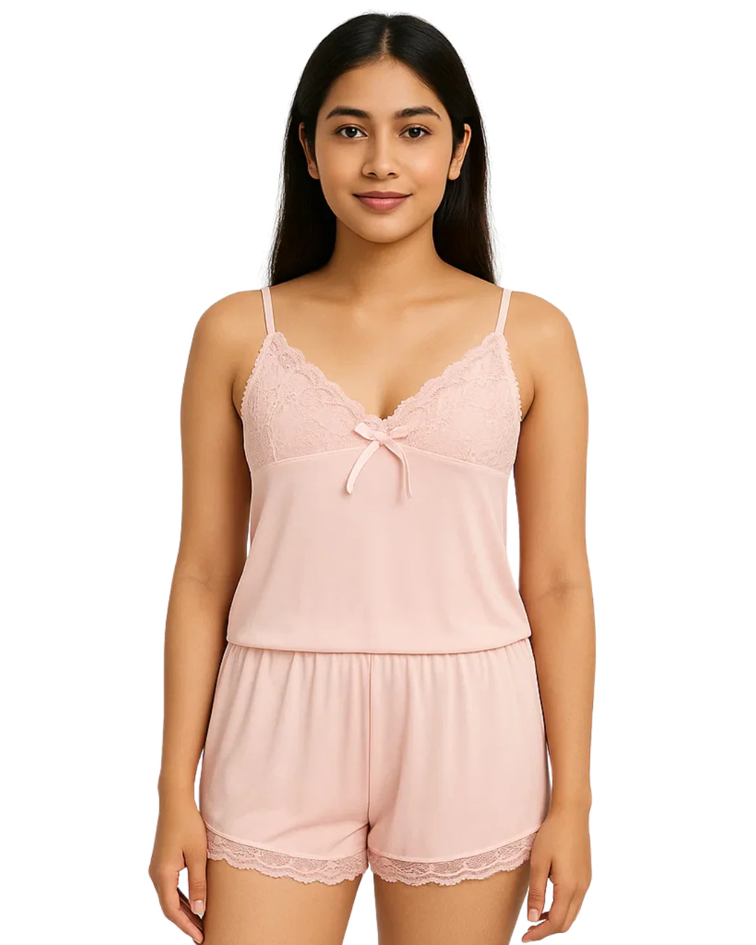 Feel light, soft, and beautiful in Rest Charm — a cami and shorts nightwear set made for peaceful nights and cozy mornings. The airy camisole with adjustable straps pairs perfectly with matching shorts, giving you both comfort and effortless style.