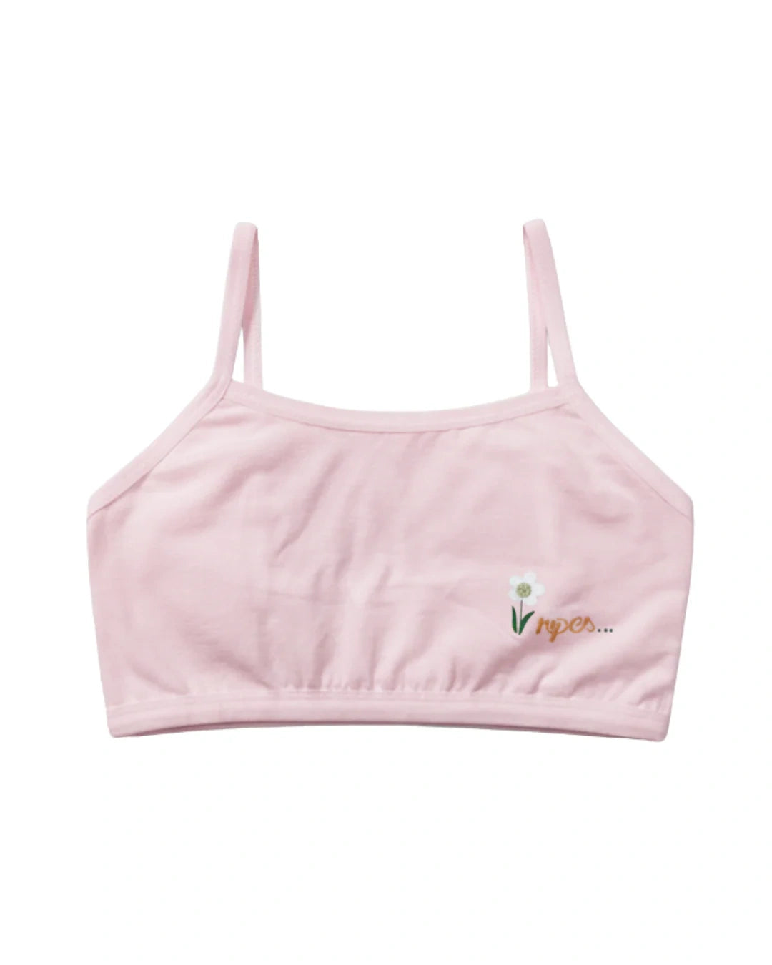 The Bloom Ease Bra is crafted for growing teens, offering a soft and lightweight feel with a touch of floral charm. Its minimal white design with a small flower print makes it simple yet refreshing, perfect for everyday wear with maximum comfort.
